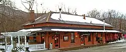 The Hudson River Railroad was built through Cold Spring in 1851 in order to expand the Troy and Greenbush Railroad from the Albany area to New York City. HRR was acquired by the New York Central Railroad in 1864, which also built a depot here in 1893. A pedestrian tunnel was added in 1929 connecting the two sections of Main Street, and a road bridge over the tracks was built in 1930,[2] but the station was closed to passengers in 1954, despite remaining in use.