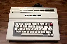 The RadioShack TRS-80 Color Computer, later marketed as the Tandy Color Computer and nicknamed the CoCo, is a line of home computers developed and sold by Tandy Corporation. Despite sharing a name with the earlier TRS-80, the Color Computer is a completely different, incompatible system and a radical departure in design and compatibility with its Motorola 6809E processor rather than the Zilog Z80 earlier models were built around.[1]
