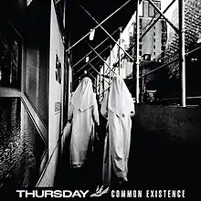 On September 30, 2008, it was announced that the band had signed to independent label Epitaph Records and that their next album would be released in the spring. Rickly said one of the group's biggest concerns is that they "find a situation where we could be free to just be Thursday. Epitaph have continually voiced their desire to help us become the band that we have always wanted to be."[9] On November 18, they announced that their next album would be called Common Existence and that it would be released in early 2009.[10] Following this, the band went on a tour of Canada with Rise Against.[11] On December 9, "Resuscitation of a Dead Man" was post on the group's Myspace page.[12] The following day, the album's track listing was posted online.[13][14] On December 24, "Resuscitation of a Dead Man" was released as a single.[15] On February 3, 2009, "Friends in the Armed Forces" was posted on the band's Myspace page.[16] On February 10, "Resuscitation of a Dead Man" was released as a free download.[17] On February 12, Common Existence was made available for streaming through the band's Myspace,[18] before being released on February 17 through Epitaph Records.[19]