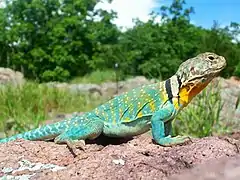 | A male common collared lizard in Taum Sauk Mountain State Park, Missouri | |