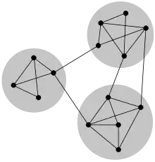 In the study of networks, such as computer and information networks, social networks and biological networks, a number of different characteristics have been found to occur commonly, including the small-world property, heavy-tailed degree distributions, and clustering, among others. Another common characteristic is community structure.[1][2][3][4][5] In the context of networks, community structure refers to the occurrence of groups of nodes in a network that are more densely connected internally than with the rest of the network, as shown in the example image to the right. This inhomogeneity of connections suggests that the network has certain natural divisions within it.