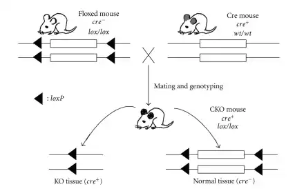 - 1 2 3 Zhang, Jian; Zhao, Jing (July 2012). "Conditional gene manipulation: Cre-ating a new biological era". J Zhejiang Univ Sci B. 13 (7): 511–524. doi:10.1631/jzus.b1200042. PMC 3390709. PMID 22761243.
