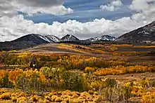 The Conway Summit Area of Critical Environmental Concern (ACEC), managed by the BLM, "offers some of the most accessible and spectacular fall color viewing areas anywhere in California." The backdrop is formed by 12,000 foot peaks of the Ansel Adams Wilderness and Yosemite National Park.