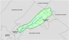 Cooks Run meets the Neshaminy Creek at its 38.10 river mile, and drains a watershed of 3.32 square miles (8.6 km2). The Geographic Name Information System I.D. is 1172392,[2] U.S. Department of the Interior Geological Survey I.D. is 02776.[3] The Cooks Run watershed, which is approximately 3.3 square miles in size, is located in central Bucks County. Cooks Run flows in a southwesterly direction and discharges into the Neshaminy Creek, which in turn flows into the Delaware River. Currently, Cooks Run is classified as Warmwater Fishery (WWF), MF (Migratory Fishery) under PA DEP's Chapter 93 Water Quality Standards. Both the Neshaminy Creek and Cooks Run are listed on the State's 303(d) List of Impaired Waters.