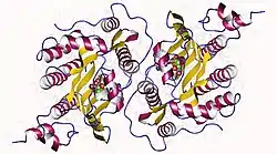 - ↑ Lee DS, Flachsová E, Bodnárová M, Demeler B, Martásek P, Raman CS (October 2005). "Structural basis of hereditary coproporphyria". Proceedings of the National Academy of Sciences of the United States of America. 102 (40): 14232–7. Bibcode:2005PNAS..10214232L. doi:10.1073/pnas.0506557102. PMC 1224704. PMID 16176984.