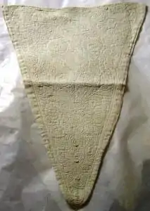 Corded quilting (also known as Marseilles quilting, Marseilles embroidery, marcella, or Zaans stitchwork) is a decorative quilting technique popular from the late 17th through the early 19th centuries. In corded quilting, a fine fabric, sometimes colored silk but more often white linen or cotton, is backed with a loosely woven fabric. Floral or other motifs are outlined in parallel rows of running stitches or backstitches to form channels, and soft cotton cord is inserted through the backing fabric using a blunt needle and drawn along the quilted channels to produce a raised effect. Tiny quilting stitches in closely spaced rows fill the motifs and provide contrast to the corded outlines.[1][2][3]
