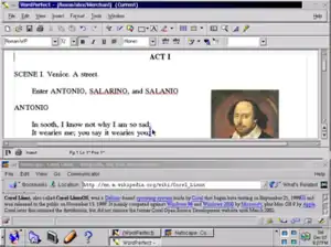 ![]() Screenshot of Corel Linux running WordPerfect and Netscape Navigator | |
