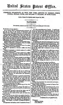 - ↑ US patent 94043, Swartwout, Cornelius, "Waffle-Iron", issued 2014-08-24