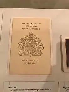 - 1 2 "The Form and Order of Service that is to be performed and the Ceremonies that are to be observed in the Coronation of Her Majesty Queen Elizabeth II in the Abbey Church of St. Peter, Westminster, on Tuesday, the second day of June, 1953". An Anglican Liturgical Library. Retrieved 15 December 2009.