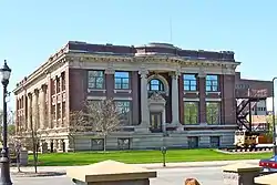 The public library in Council Bluffs had its beginnings in 1866, when a subscription library was established for males over the age of 12.[1] The Council Bluffs Library Association was formed in 1878. The Free Public Library was created in 1882, and it operated out of rented space. W. S. Baird, a library trustee, contacted the Carnegie Foundation who agreed to fund a new building at $50,000 if the city agreed to provide a site and institute an annual tax of $5,000 to operate the facility.[3] The foundation was persuaded to raise its grant to $70,000 if the yearly tax was raised to $7,000. The grant was awarded on January 6, 1903, and the new building was dedicated on September 12, 1905.[4] It was designed by the Chicago architectural firm of Patton & Miller in the Beaux-Arts-style. It was the largest Carnegie library built in the state.[3]