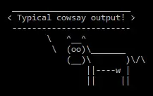 | -f cowfile | Specifies a .cow file from which to load alternative ASCII art. Accepts both absolute file-paths and those relative to the environment variable COWPATH. |