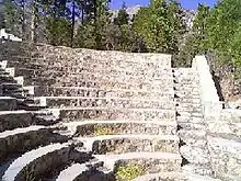 One of the most interesting features of the Crystal Lake Recreation Areas is the amphitheater which was built by the Civilian Conservation Corps and other agencies and was fully restored after the damage to the facility caused by the Curve Fire of 2002 by contractors. This open facility is often used by U. S. Forest Service volunteers and employees to give lectures to individuals, Boy Scouts, hikers, campers, and picnickers during the day and often at night.