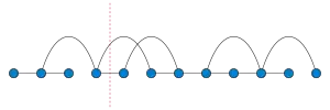 The cutwidth is greater than or equal to the minimum bisection number of any graph. This is minimum possible number of edges from one side to another for a partition of the vertices into two subsets of equal size (or as near equal as possible). Any linear layout of a graph, achieving its optimal cutwidth, also provides a bisection with the same number of edges, obtained by partitioning the layout into its first and second halves. The cutwidth is less than or equal to the maximum degree multiplied by the graph bandwidth, the maximum number of steps separating the endpoints of any edge in a linear arrangement chosen to minimize this quantity.[6] Unlike bandwidth, cutwidth is unchanged when edges are subdivided into paths of more than one edge. It is closely related to the "topological bandwidth", the minimum bandwidth that can be obtained by subdividing edges of a given graph. In particular, for any tree it is sandwiched between the topological bandwidth and a slightly larger number, .[1]