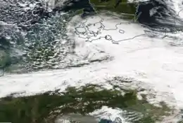 Aqua Modis satellite view of Xavier crossing Germany and Poland on 5 October 2017.