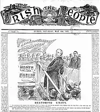 By 1907 there were seven earlier Irish Party MPs outside of the party. Proposals to reunite the party were made by both O'Brien and the Irish Party leader John Redmond with a meeting summoned for the Mansion House, Dublin in April 1908.[43] Sheehan, O'Brien and others rejoined the party temporarily for the sake of unity. However, when Redmond called a National Convention for February 1909 to discuss amended funding of the 1903 Land Purchase Act, it ended with O'Brien and Sheehan being again driven from the party at what became known as the Baton Convention.[44] It was "probably the stormiest meeting ever held by constitutional nationalists".[45]