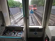 The cars do not have a driver's cab, although there is a small driving console concealed behind a locked panel at each outer car end from which the Passenger Service Agent (PSA) can manually drive the train if necessary. Other consoles at each door opening allow the PSA to control door closure and make announcements whilst patrolling the train. Because of the absence of a driver's position, the fully glazed car ends provide a panoramic forward (or rear) view for passengers.[7] At least one PSA is required on each train to close the doors upon departing and for emergency situations, such as taking the controls or evacuating the train, especially in tunnelled sections.[12]