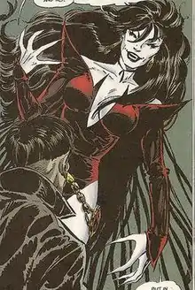 Dark Angel is an incredibly powerful sorceress, able to cast various magic spells, transverse through spacetime, and be nearly immortal.[13]
