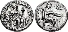 ![]() Coin of Datames. The reverse shows Datames wearing a Persian dress whilst inspecting an arrow, and the obverse shows Baal | |