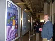 David Malin looking at a poster about Malin 1, a galaxy found by him