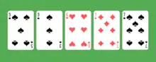 ![]() A row of cards from the game. The , and sum to 20 and can be discarded. | |