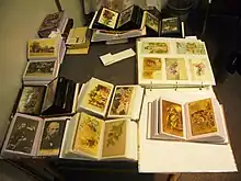With the index card storage method collections of postcards are located in boxes of the appropriate size. Such boxes can be made by the collector independently from plywood, hardboard and standard shoe boxes. The boundaries of each subsection of the collection are marked with separator cards, which have a format larger than that of the postcard. When it comes to envelopes, a collector can put different postcards in an envelope dividing them by their themes. The main advantages of these methods compared to albums are compactness, money saving, and time saving (reducing the time spent on inserting and rearranging cards in albums). The main disadvantage is that postcards quickly wear out from constant sorting.[26]