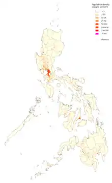 Philippines population density Map per province as of 2009 per square kilometer: