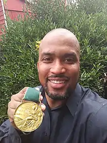 Derrick Ralph Adkins (born July 2, 1970) is a former American track and field athlete who specialized in the 400-meter hurdles. He was an Olympic gold medalist in that event at the 1996 Summer Olympics and World Champion at the 1995 World Championships in Athletics. He was the fastest man in the world in the 1994 and 1996 seasons, and holds a personal record of 47.54 seconds.[1] Adkins was a two-time national champion at the USA Outdoor Track and Field Championships.