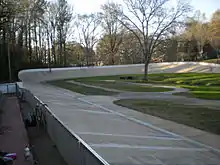 Dick Lane Velodrome, constructed in 1974, is a bicycle racing facility inspired by a group of residents and City officials that visited the Munich Olympics. Located eight miles south of downtown Atlanta, the Velodrome is 321.8 metres (1,056 ft) with 36° banked concrete track and is based in Sumner Park in a residential part of East Point. The City of East Point owns the facility and has a long-term partnership with East Point Velodrome Association, Inc. (EPVA) to manage it. It is one of 22 active velodromes in the United States.[1]