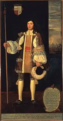 Diego de Vargas Zapata y Luján Ponce de León y Contreras (1643–1704), commonly known as Don Diego de Vargas, was a Spanish Governor of the New Spain territory of Santa Fe de Nuevo México, to the US states of New Mexico and Arizona, titular 1690–1695, effective 1692–1696 and 1703–1704. He is known for leading the reconquest of the territory in 1692 following the Pueblo Revolt of 1680. This reconquest is commemorated annually during the Fiestas de Santa Fe in the city of Santa Fe.