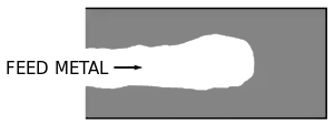 Most metals and alloys shrink as the material changes from a liquid state to a solid state. Therefore, if liquid material is not available to compensate for this shrinkage a shrinkage defect forms.[3] When progressive solidification dominates over directional solidification a shrinkage defect will form.[2]