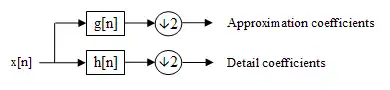 The DWT of a signal is calculated by passing it through a series of filters. First the samples are passed through a low-pass filter with impulse response resulting in a convolution of the two: