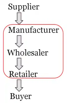 However manufacturers will still incur distribution costs, such as the physical transport of goods, packaging in small units, advertising, and customer helplines, some or all of which would previously have been borne by the intermediary. To illustrate, a typical B2C supply chain is composed of four or five entities. These are the supplier, manufacturer, wholesaler, retailer and buyer.