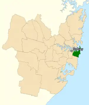 ![]() Division of Wentworth in New South Wales, as of the 2016 federal election | |