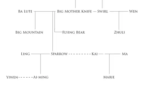 - Ling: Ling is the wife of Sparrow and the mother of Ai-ming. She develops a close relationship with Yiwen particularly after Ai-ming flees China, and encourages her to attend the University of Tokyo.