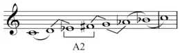 The scale contains two augmented seconds,[5] one in each tetrachord.[1] It also contains an augmented fourth between the first and fourth degree.