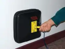A duct leakage tester is a diagnostic tool designed to measure the airtightness of forced air heating, ventilating and air-conditioning (HVAC) ductwork. A duct leakage tester consists of a calibrated fan for measuring an air flow rate and a pressure sensing device to measure the pressure created by the fan flow. The combination of pressure and fan flow measurements are used to determine the ductwork airtightness. The airtightness of ductwork is useful knowledge when trying to improve energy conservation.