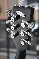 Duesenberg uses their own tuners, called Z-Tuners, on every guitar. These tuners have a drilled-through shaft which allows for fast string change by putting the string all the way through the tuner and cutting it off at the end to prevent sharp ends sticking out at the back of the headstock.[5]