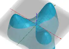 For more complex cases where all the second-degree derivatives are zero, but higher-degree derivatives are nonzero, the Dupin indicatrix is more complex. For example, the monkey saddle has Dupin indicatrix in the shape of six-pointed hyperbola.
