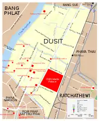 Neighbouring districts are, clockwise from north, Bang Sue, Phaya Thai, Ratchathewi, Pathum Wan, Pom Prap Sattru Phai, Phra Nakhon, and across the Chao Phraya River, Bang Phlat.