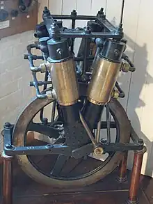 E.J. Pennington is probably best known today for his pioneering motorcycles.[3] He is sometimes credited with having invented the word "motorcycle"; he used the term as early as 1893. Pennington built and demonstrated his original motorcycle design in Milwaukee in 1895. Apparently not finding any backers for his idea he took it to England where he sold the patents for it to Harry John Lawson's The Great Horseless Carriage Company Limited in 1896 and joined that company's board of directors. Lawson had two more prototypes built[4] but nothing further came from the design. Pennington made many claims for his motorcycle, but it is doubtful if any of them are true. The design was very primitive and a few journalists of the time expressed doubts as to whether or not it would even run, though The Autocar reported in June 1896: "...although the motor required some little alteration, the speed developed was said to have varied from thirty to forty miles per hour."[5] Notable features were that the engine's cranks were connected directly to the rear axle, the cylinders had no cooling fins, and Pennington made use of balloon tires - an invention he is also often credited with.[6]
