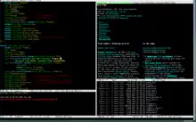 Emacs /ˈmæks/, originally named EMACS (an acronym for "Editor Macros"),[1][2][3] is a family of text editors that are characterized by their extensibility.[4] The manual for the most widely used variant,[5] GNU Emacs, describes it as "the extensible, customizable, self-documenting, real-time display editor".[6] Development of the first Emacs began in the mid-1970s,[7] and work on GNU Emacs, directly descended from the original, is ongoing; its latest version is 29.1, released July 2023.[8]