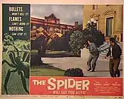 Earth vs. the Spider (a.k.a. The Spider) is an independently made 1958 American black-and-white science fiction horror film produced and directed by Bert I. Gordon, who also provided the plot upon which the screenplay by George Worthing Yates and Laszlo Gorog was based. Though the title suggests a global crisis, the film focuses entirely on a small town being terrorized by a giant spider whose origin is never explained. The film stars Ed Kemmer, June Kenney and Eugene Persson. The special effects were by Bert I. Gordon and Paul Blaisdell. Earth vs. the Spider was released by American International Pictures as a double feature in different film markets with either The Brain Eaters or The Screaming Skull.