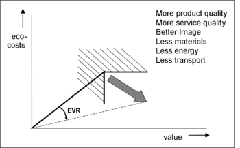 - At the production side: the improvement of eco-efficiency ('lowering EVR') of products and services by the industry