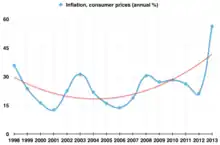 - ↑ "Inflation rate (consumer prices)". CIA World Factbook. Archived from the original on 13 June 2007. Retrieved 26 February 2014.