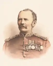 Newdegate was commissioned into the Rifle Brigade in 1842.[3] He served as a captain in the Crimean War 1854–55, including the Siege of Sevastopol and was present at the Battle of Alma (Sep 1854) and at the Battle of Inkerman (Nov 1854), where he was wounded. For his services in the war, he was mentioned in despatches, received a brevet promotion to major, the Crimea Medal with three clasps, the Turkish Crimean War medal, and was awarded the knighthood of the French Legion d'Honneur and the fifth class of the Order of Medjidie. In 1861 he left the Rifle Brigade, and was employed in Canada. From 1865 to 1870 he was assistant adjutant general at Aldershot, and from 1873 to 1877 he commanded first the Carlisle Regimental district, then the Rifle Depot at Winchester. In 1878 he was appointed in command of the Chatham district, but relinquished the command the following year for active service.[2] He served as General Officer Commanding the 2nd Division during the Anglo-Zulu War in 1879.[4][5] He was appointed a Companion of the Order of the Bath (CB) for his service in the war. On his return to England, he became General Officer Commanding South-Eastern District in April 1880, serving until 1885.[6]