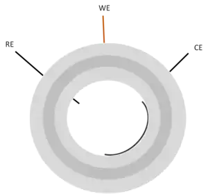 The electrochemical cell is made of a plastic material resistant to various chemical solvents (e.g. sulfuric acid, perchloric acid etc.), with a good mechanical resistance and low fabrication costs.[5] In order to satisfy these requirements, various materials can be employed, such as polytetrafluoroethylene (PTFE) or teflon. Platinum and AgCl wires are widely employed as reference electrode and platinum wires as counter electrode.
