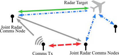 Co-design methods consist of jointly considering radar and communications systems when designing new systems to optimally share spectral resources. Such systems are jointly designed from scratch to efficiently utilize the spectrum and can potentially result in performance benefits when compared to an isolated approach to system design. Co-designed systems are not necessarily physically co-located. When operating from the same platform, co-design includes the cases where radar beams and waveforms are modulated to convey communications messages, an approach which is typically referred to as dual function radar communications systems.[16] For example, some recent experimentally demonstrated co-design approaches include: