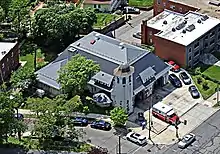 The first fire station east of the Anacostia River was built in 1898. This station, designed by the Washington, D.C. architectural firm of Averill and Adams, was the fourth built there in 1910. The eclectic style, principally French revival, reflected the desire by the Office of the Municipal Architect to create unique designs for new fire stations.[2] At the time, this part of the District of Columbia was considered a suburban district because it was beyond public water service and the street alarm system. Chemical Company Number 2 was housed here for that reason. The building's hose tower was also used as a lookout post. It joined with the last of the District's Chemical companies in being converted to a regular engine company on January 1, 1921 when it became Engine Company 19.[3] In 1925 it was the last company in the department to switch from horse drawn apparatus to motorized.