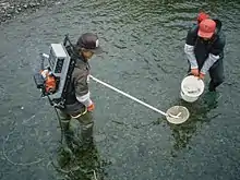 However, in more generalised environmental monitoring, many animals act as robust indicators of the quality of the environment that they are experiencing or have experienced in the recent past.[31] One of the most familiar examples is the monitoring of numbers of Salmonid fish such as brown trout or Atlantic salmon in river systems and lakes to detect slow trends in adverse environmental effects. The steep decline in salmonid fish populations was one of the early indications of the problem that later became known as acid rain.