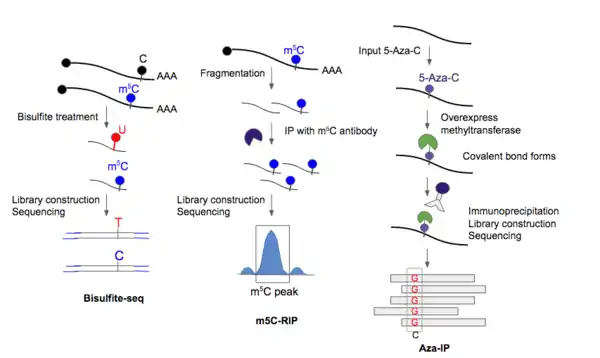 Aza-IP 5-azacytidine-mediated RNA immunoprecipitation has been optimized on and used for detecting targets of methyltransferases, particularly NSUN2 and DNMT2[18] — the two main enzymes responsible for laying down the m5C mark.